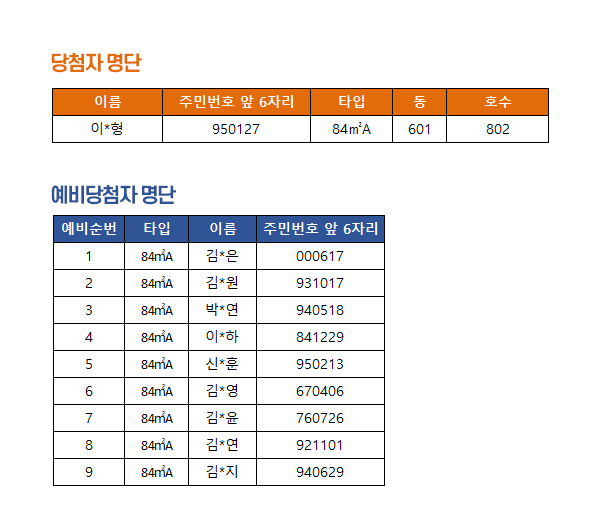 고양 지축지구 B-6블록 무순위 당첨자 및 예비당첨자